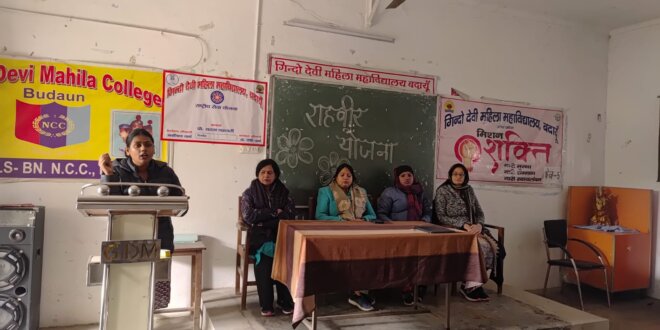 बदायूं। गिन्दो देवी महिला महाविद्यालय, बदायूं में एनएसएस, एनसीसी एवं रेंजर्स समिति के संयुक्त तत्वावधान में सड़क सुरक्षा अभियान के अंतर्गत राहवीर योजना पर जागरूकता कार्यक्रम का आयोजन किया गया। कार्यक्रम का शुभारंभ मां शारदे के चित्र के समक्ष पुष्प अर्पित कर किया गया।