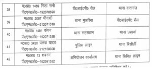 40 से अधिक कर्मचारियों का नाम शामिल है। इसमें निरीक्षक, आरक्षी, कांस्टेबल और विभिन्न थानों के प्रभारी शामिल हैं।