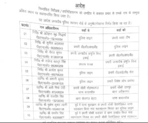 निरीक्षक राजेन्द्र बहादुर सिंह (पीएनओ-892660258) को अपराध शाखा से स्थानांतरित कर प्रभारी जनपदीय अंगुलि चिन्ह इकाई बनाया गया है। वहीं निरीक्षक अवधेश कुमार (पीएनओ-890700266) को पुलिस लाइन से प्रभारी वीआईपी सैल नियुक्त किया गया है।