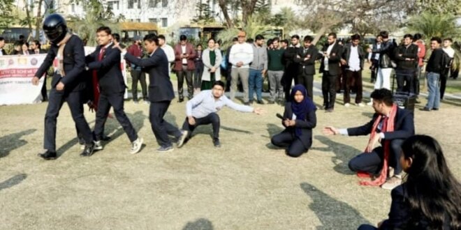 सड़क सुरक्षा अपनाएं, जीवन बचाएं… सफ़र छोटा है, सोच बड़ी रखो, हर मोड पर ज़िम्मेदाऱी रखो…एक गलत कदम, भाऱी पड जाता है, पूरा परिवार आंसू बहाता है…, सिर क़ी सुरक्षा पहल़ी ज़िम्मेदाऱी, हेलमेट के बिना नह़ीं है सवाऱी… स़ीट बेल्ट छोड़ी, फोन कान से लगाया, एक कॉल क़ी खातिर उसने ज़ीवन दांव पर लगाया… सरीखे नारों के जरिए सड़क सुरक्षा का संदेश दिया। नुक्कड़ नाटक में सीसीएसआईटी के स्टुडेंट्स- मानवी कुमारी, जय कथुरिया, आर्यन राय, आर्यन, दुर्गेश सिंह, गौतम सिंह, दक्षित सिंह, जबकि एग्रीकल्चर कॉलेज के स्टुडेंट्स- अनुराग कुमार, आदित्य त्रिपाठी, अभिनय कुमार, अभिज्ञा गंगवार आदि ने प्रतिभाग किया। कार्यक्रम में यूनिवर्सिटी के राष्ट्रीय सेवा योजना समन्वयक डॉ. रत्नेश जैन, श्री दीपक मलिक, मो. सलीम, श्री प्रिंस गुप्ता, श्रीमती ममता यादव के संग-संग सीसीएसआईटी और कॉलेज ऑफ एग्रीकल्चर के छात्र-छात्राएं मौजूद रहे।