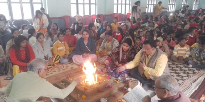 कार्यक्रम का शुभारंभ वैदिक यज्ञ से हुआ। यज्ञ के मुख्य यजमान अलंकार रस्तोगी, पूजा रस्तोगी, सिद्धार्थ काश्यप, ओम प्रकाश वैश्य एवं प्रधानाचार्य कालिका प्रसाद गंगवार रहे। यज्ञ संपादन पंडित बृजेश मिश्रा एवं प्रवेश मिश्रा ने कराया।