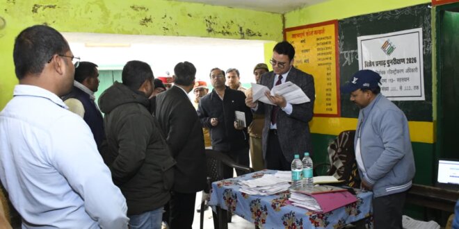 निरीक्षण के दौरान उन्होंने प्रारूप 6, 7, 8 सहित अन्य प्रारूपों की स्थिति की जानकारी ली तथा संबंधित कर्मचारियों को आवश्यक दिशा-निर्देश एवं मार्गदर्शन प्रदान किया। उन्होंने बताया कि निर्वाचक नामावली का प्रारूप प्रकाशन 06 जनवरी 2026 को किया जा चुका है तथा दावे और आपत्तियां दर्ज कराने की अवधि 06 जनवरी से 06 फरवरी 2026 तक निर्धारित है। नामावली से संबंधित सुनवाई, सत्यापन एवं निर्णय की प्रक्रिया 27 फरवरी 2026 तक पूर्ण कर ली जाएगी।