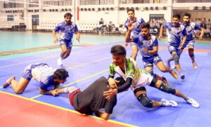 मुरादाबाद। तीर्थंकर महावीर यूनिवर्सिटी, मुरादाबाद की पुरुष वर्ग की कबड्डी प्रतियोगिता के सेमीफाइनल मुकाबलों में फ़िज़िकल एजुकेशन और सीसीएसआईटी कॉलेज विजेता रहे। ये दोनों टीमें अब फाइनल में भिड़ेंगी। फ़िज़िकल एजुकेशन कॉलेज और नर्सिंग कॉलेज के मुकाबले में नर्सिंग कॉलेज ने टॉस जीतकर कोर्ट चुना। फर्स्ट हाफ में फ़िज़िकल एजुकेशन ने 26-8 से बढ़त बनाकर रखी। सेकेंड हाफ में भी 62-32 से फ़िज़िकल एजुकेशन की टीम आगे रही और अंततः 30 अंकों से मुकाबला अपने नाम कर लिया। फिजिकल एजुकेशन की ओर से आर्यन प्रताप सिंह ने सर्वश्रेष्ठ प्रदर्शन किया। सीसीएसआईटी और इंजीनियरिंग कॉलेज के सेमीफाइनल मुकाबले में सीसीएसआईटी कॉलेज ने टॉस जीतकर रेड चुना। फर्स्ट हाफ में सीसीएसआईटी ने 23-12 और सेकेंड हाफ में 58-35 से आगे रही और अंततः 23 अंकों से मैच जीत लिया। सीसीएसआईटी के गौरव शर्मा का प्रदर्शन सर्वश्रेष्ठ रहा।