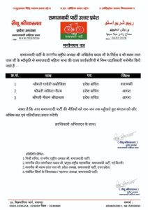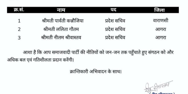 सपा महिला सभा में संगठन को मजबूत करने के लिए तीन नई पदाधिकारी मनोनीत की गई हैं।