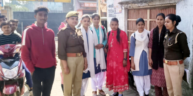 मिशन शक्ति केंद्र की ओर से महिला कांस्टेबल प्रियंशी तोमर और पूजा ने छात्राओं को महिला एवं बालिकाओं के अधिकारों के प्रति संवेदनशील रहने की जानकारी दी।