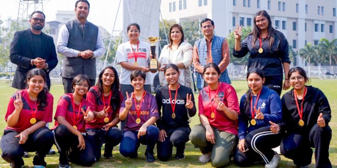 मुरादाबाद। तीर्थंकर महावीर यूनिवर्सिटी, मुरादाबाद की इंटरकॉलिजिएट चैंपियनशिप-2026 में मेडिकल कॉलेज की छात्राओं ने दो गोल्ड मेडल जीत लिए हैं। महिला क्रिकेट के संग-संग टेबल टेनिस की चैंपियनशिप अपने नाम कर ली है, जबकि पुरुष वर्ग की टेबिल टेनिस प्रतियोगिता में मैनेजमेंट कॉलेज ने स्वर्ण पदक झटक लिया है। मेडिकल कॉलेज बनाम सीसीएसआईटी के फाइनल मुकाबले में मेडिकल की वैष्णवी सचिन कटारिया ने सर्वाधिक 21 गेंदों में 36 रन बनाए जिसमें 4 चौके और 2 छक्के शामिल थे। मेडिकल की वैष्णवी सचिन कटारिया को वुमैन ऑफ द मैच चुना गया, जबकि टेबिल टेनिस में मेडिकल कॉलेज की सलोनी जैन ने नर्सिंग कॉलेज की श्रेया को 3-0 सेट से हराकर स्वर्ण पदक अपने नाम किया। फिजिकल एजुकेशन ने तीसरे स्थान के लिए फाइन आर्ट्स को 12 रनों से हराया। टेबिल टेनिस में तीसरे स्थान के लिए डेंटल कॉलेज की अनामला हसन ने फिजिकल एजुकेशन कॉलेज को 3-0 सेट से हराया। पुरुष वर्ग टेबल टेनिस का फाइनल मुकाबला मेडिकल और मैनेजमेंट कॉलेज के बीच हुआ। मैनेजमेंट कॉलेज के आरुष टंडन ने मेडिकल कॉलेज के दक्ष को 3-0 सेट से मात देकर स्वर्ण पदक अपने नाम किया। मेडिकल कॉलेज के दक्ष रजत पदक विजेता रहे। एसोसिएट डीन पीएचडी सेल डॉ. ज्योति पुरी ने बतौर मुख्य अतिथि, फिजिकल एजुकेशन कॉलेज के प्राचार्य प्रो. मनु मिश्रा, फैकल्टी श्री तौहिद अख्तर, रिसर्च स्कॉलर श्री चन्द्रशेखर आदि ने विजेता और उपविजेताओं टीमों को मेडल देकर सम्मानित किया।