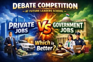 प्रतियोगिता का विषय “निजी क्षेत्र बनाम सरकारी सेवा” रहा, जिस पर विद्यार्थियों ने परिपक्वता के साथ अपने विचार रखे।