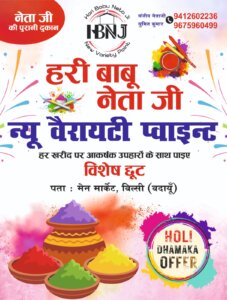 बिल्सी का भरोसेमंद नाम – हरी बाबू नेता जी की पुरानी दुकान Govind Deval February 23, 2026 51 Views Spread the loveबिल्सी का भरोसेमंद नाम – हरी बाबू नेता जी की पुरानी दुकान ऐसे ही अपनी बिजनेस का प्रचार करने के लिए संपर्क करें 9411 217098 का Spread the love