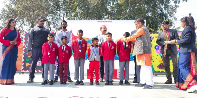 बिल्सी। व्यापारी नेता चंद्रसेन महेश्वरी ने फ्यूचर लीडर्स स्कूल, बिल्सी में आयोजित वार्षिक खेल समारोह में बच्चों को मेडल वितरण कर उनका उत्साहवर्धन किया।