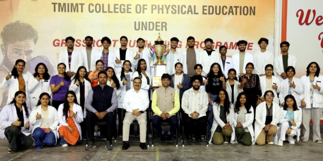 तीर्थंकर महावीर यूनिवर्सिटी इंटरकॉलिजिएट स्पोर्ट्स चैंम्पियनशिप -2026 में 52 अंकों के संग मेडिकल कॉलेज सेकेंड, 42 अंक झटक कर सीसीएसआईटी की थर्ड पोजीशन,परम्परागत नियमानुसार ट्रॉफी का औपचारिक हस्तांतरण मेडिकल कॉलेज को