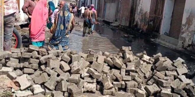 होली जैसे खुशी के पर्व पर जहां लोग नए कपड़े पहनकर परिवार के साथ उत्सव मनाने की तैयारी करते हैं, वहीं नगर के मोहल्ला संख्या पांच के लोगों को गंदे पानी से होकर गुजरने की मजबूरी झेलनी पड़ी। पिछले करीब एक वर्ष से जलभराव की समस्या से जूझ रहे लोगों का सब्र आखिरकार होली के दिन जवाब दे गया और आक्रोशित लोगों ने विरोध स्वरूप सड़क की इंटरलॉकिंग ईंटें उखाड़कर रास्ता बंद कर दिया।