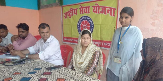 बदायूं। आत्माराम महाविद्यालय अलापुर में चल रहे सात दिवसीय राष्ट्रीय सेवा योजना (एनएसएस) शिविर के छठवें दिन स्वयंसेविकाओं ने नगर की बस्ती में पहुंचकर अनपढ़ बुजुर्ग महिलाओं और पुरुषों को अक्षर ज्ञान कराया।