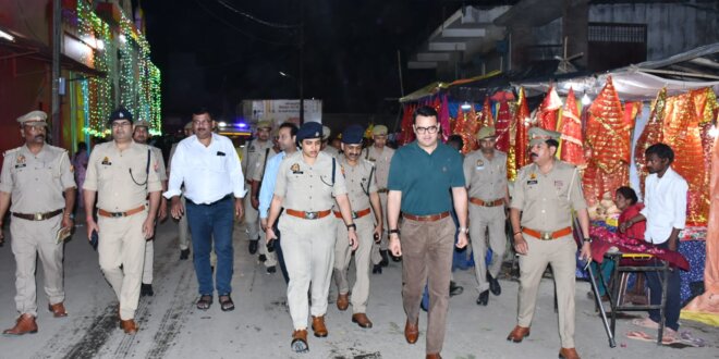 बदायूं। चैत्र नवरात्रि एवं आगामी ईद-उल-फितर के मद्देनजर जिलाधिकारी अवनीश राय एवं वरिष्ठ पुलिस अधीक्षक सुश्री अंकिता शर्मा ने संयुक्त रूप से पुलिस बल के साथ शहर के प्रमुख व भीड़-भाड़ वाले क्षेत्रों में पैदल गश्त कर सुरक्षा व्यवस्था का जायजा लिया।