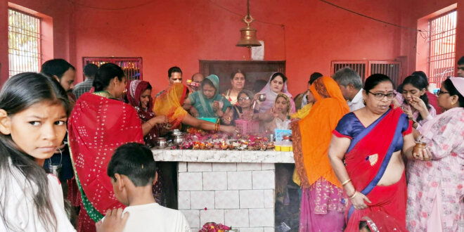 नगर के मुख्य बाजार स्थित कुटी मंदिर एवं मोहल्ला संख्या दो स्थित नीलकंठेश्वर महाराज मंदिर में महिलाओं ने मां दुर्गा की आराधना करते हुए भजन-कीर्तन किया। भक्ति गीतों से मंदिरों का वातावरण पूरी तरह भक्तिमय हो गया।