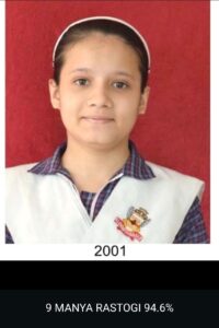 एवं श्रेया रेन्डर (कला वर्ग) ने 97.8% अंक प्राप्त कर जिले भर में द्वितीय स्थान प्राप्त कर अपनी योग्यता व प्रतिभा का परचम लहराया। कक्षा-12 में 28 विद्यार्थियों ने 90% अंक से अधिक अंक प्राप्त किए। कक्षा-10 में दिव्यम रस्तोगी ने 98.6% अंक प्राप्त कर जिले में दूसरा स्थान प्राप्त किया। वहीं पूर्वी सक्सेना एवं मुहम्मद उमैर ने 98.2% अंक प्राप्त कर अपनी योग्यता का परिचय दिया। इतना ही नहीं 40 छात्रों से अधिक ने 90% अंक प्राप्त किए। स्कूल का परीक्षा परिणाम शत-प्रतिशत रहा।